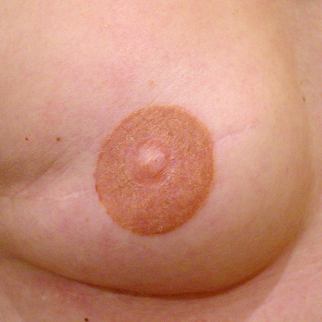 L’aréole reconstruite est dessinée à l’identique du sein contro-latéral, la couleur est celle de l’aréole opposée. Le mamelon, pour le cas où il n’aurait pas été créé en volume lors de l’intervention chirurgicale, est dessiné en « trompe l’œil » par la Dermographe. Les différences de couleur dans l’aréole elle-même sont reproduites.