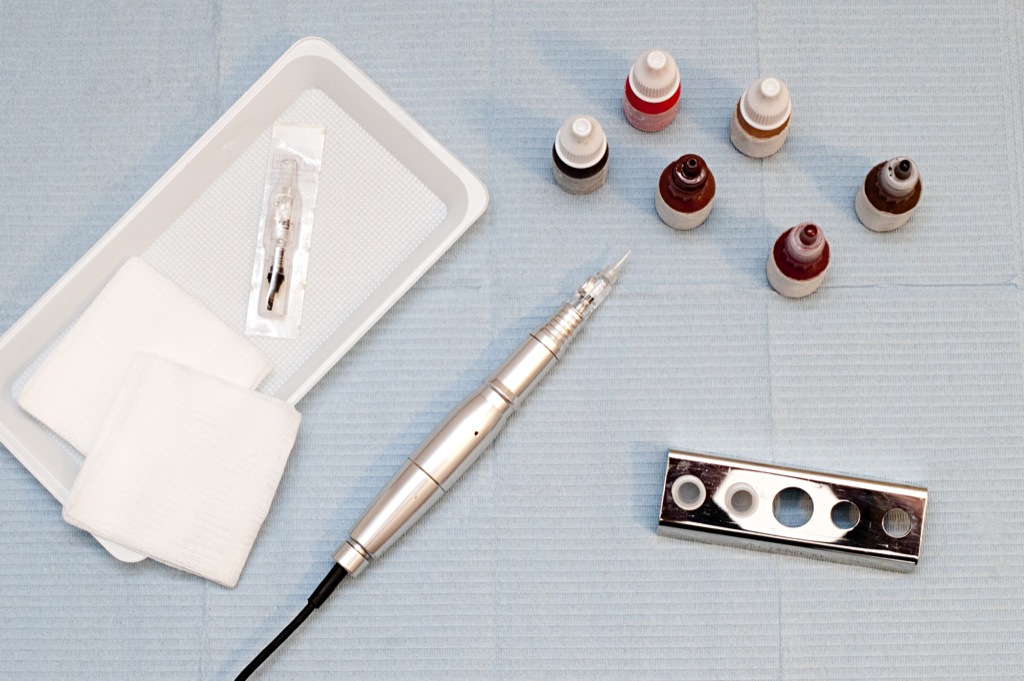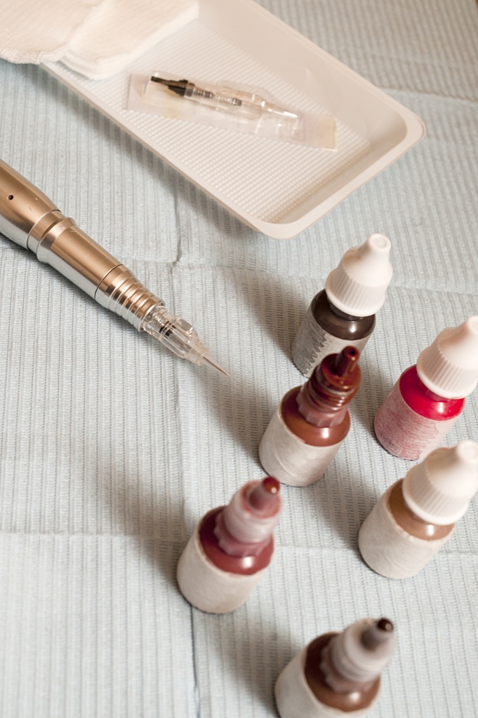 Les aiguilles spéciales utilisées pour pigmenter sont à usage unique et ne sont, en aucun cas, réutilisées pour les retouches à éventuellement effectuer sur le même patient. Bien entendu, le matériel est stérile et déconditionné devant le patient.